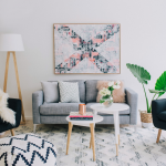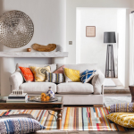 Диван с механизмом американская раскладушка в интерьере гостиной, оформленном в скандинавском стиле