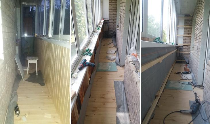 Я забыл про балкон. Раздвижные рамы мне поставили спецы, и я приступил к отделке.