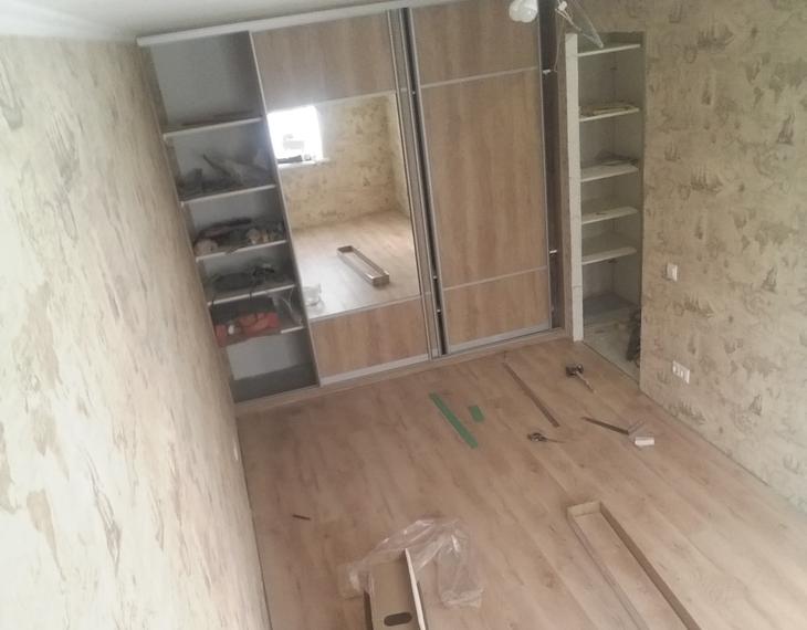 Начал делать шкафы-купе. Опять экономия. Заказывал распил по размерам и собирал каркас. После уже заказывал дверь. Получается в 1,5—2 раза дешевле, чем если делать под ключ.