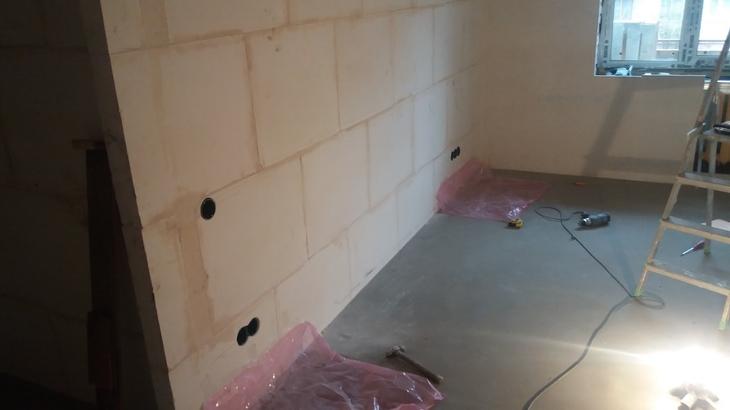 Параллельно занес в исполком заявление на перепланировку и приступил к возведению стен. Стены решил делать из пазогребневых плит: купился на то, что штукатурить их не надо.