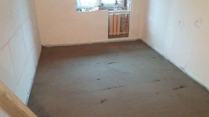 Стяжку решил делать полусухую. На первый взгляд дорого, но с бетоном тяжело физически, песок продают только машиной. А так как я строитель офисный, а не на площадке, то пришлось бы покупать. В итоге приехала бригада, и за 3 часа завалили весь пол в квартире.
