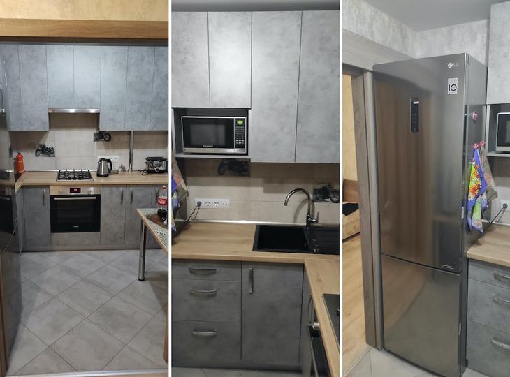 Подъемники не ставил, шкафчики распашные, петли с доводчиками, тандембоксы и т. д. В итоге кухня обошлась в $600.