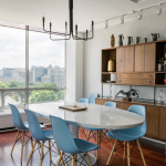 Буфет в ярких оттенках освежит интерьер светлой кухни