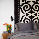 - В малогабаритных комнатах органично смотрятся черно-белые орнаменты, узоры и этнические мотивы. К примеру, мандала графика в интерьере способна наполнить атмосферу нотками загадочности и сакральной магии. Наиболее подходящим для интерьера, оформленного графическими рисунками с геометрическими составляющими, станет схематический орнамент шри-янтры с обрамлением, составленным из прямоугольных элементов.