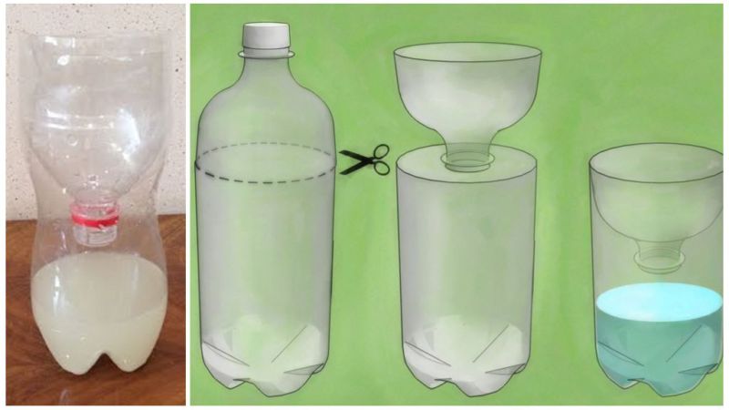 6. На ветках плодовых деревьев закрепите бутылки со сладкой водой, сделав их по схеме на картинке: