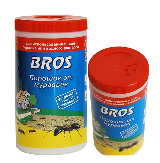 5. Брос. Представляет собой порошок, приманивающий муравьев своим запахом. Попадая во внутрь, препарат начинает ядовитое действо, которое тут же парализует все процессы организма насекомого. Не требует дополнительных процессов приготовления и полностью готов к применению.