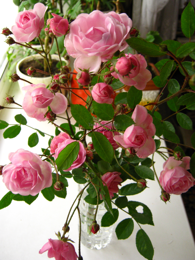 На этом фото букет роз временно поставлен на подоконник, для того, чтобы было больше света для съемки и показать всю чарующую нежность этого цветка. Кстати, этот букет роз появился у нас в квартире с нашего дачного участка. Моя мама разводит разные сорта роз и, когда мы бываем летом и осенью на даче, то привозим с собой шикарные букеты ароматных роз и они стоят у нас очень долго! Ведь цветы с клумбы самые свежейшие! Кстати говоря, это и касается вопроса приобретения цветочных букетов в магазине — обращайте внимание на их свежесть, если хотите, чтобы потом они простояли в доме дольше!