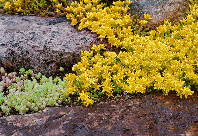 Седум едкий (очиток едкий) Высота до 10 см, цветение с июня по июль, окрас цветков желтый