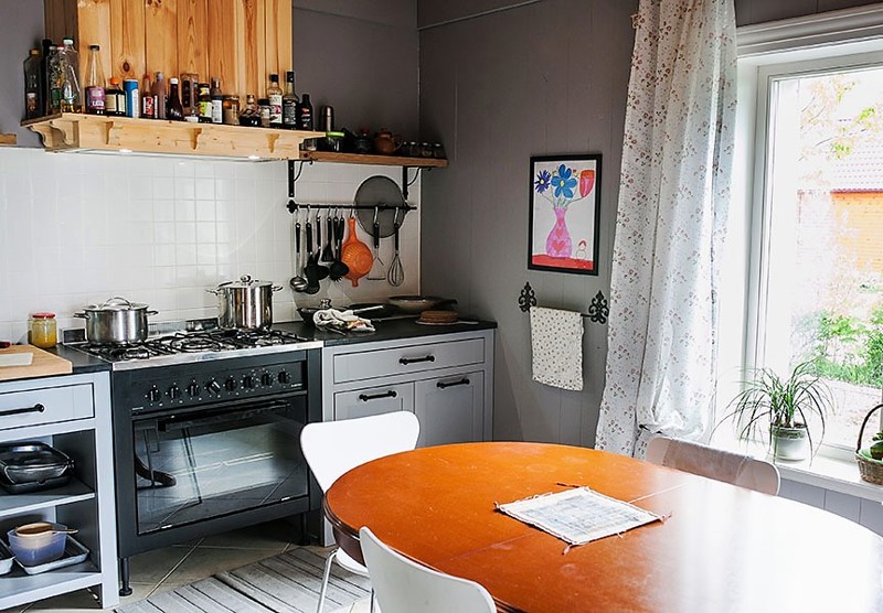 Кухней Максим гордится, ведь он сам придумал, какая она будет. Рисовал эскизы, даже сам сделал стол.