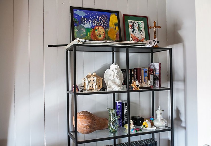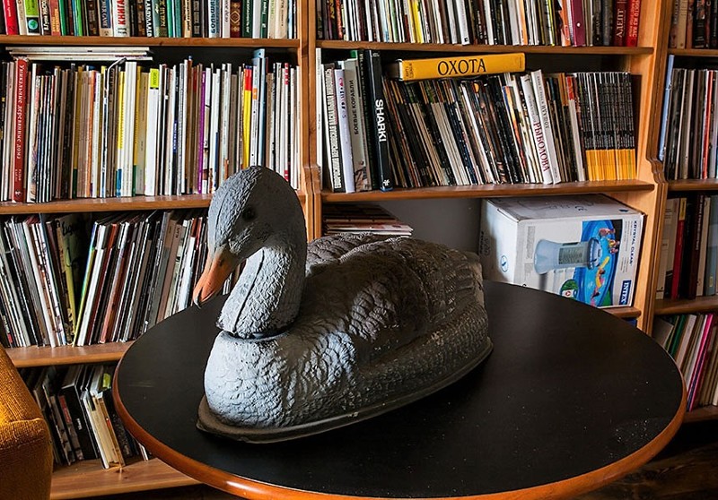 Когда семья жила дома, они работали в своих кабинетах. Сейчас в эту комнату складывают все ненужное барахло. Там стоят елочные украшения и книги. Книги они сами покупали, но что-то и друзья им дарили.