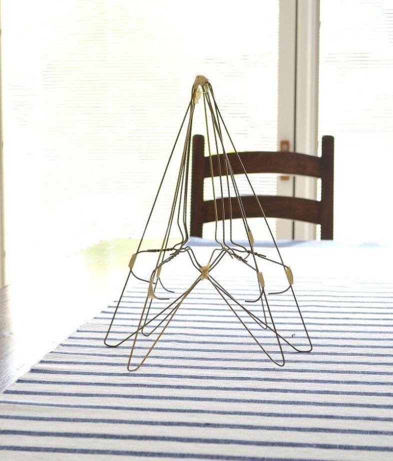 Каркасом для елки стали обычные проволочные плечики для одежды. Их не обязательно даже покупать, можно просто на время потеснить одежду в шкафу.