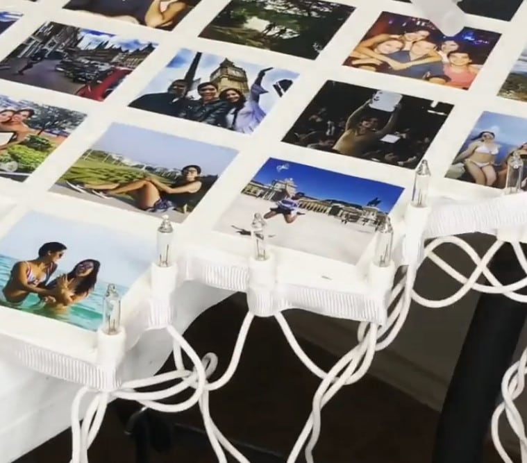 Для работы потребуется квадратная деревянная панель. Красиво будет смотреться рамка, вырезанная из деревянной панели, размеры которой составляют 1,1 м х 1 м. Также Вам понадобится ручная циркулярная пила, клей-пистолет, белая краска, квадратные фотографии размером 8 см х 8 см и фонарики для украшения.