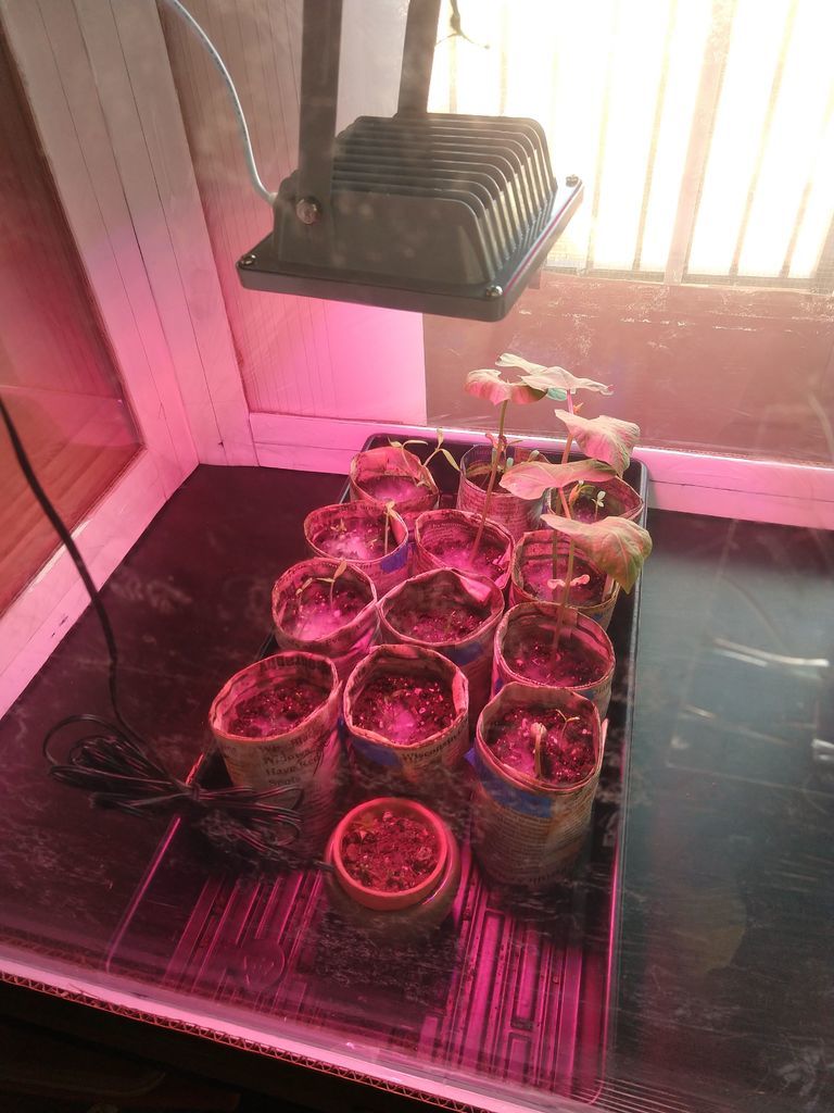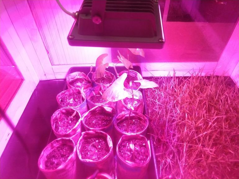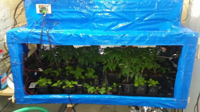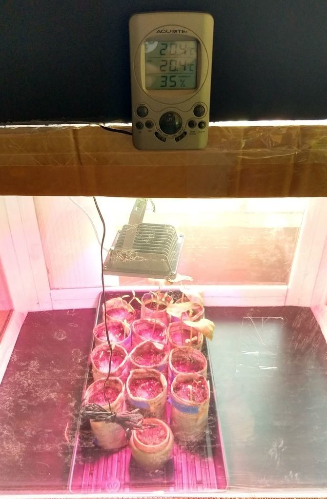 В принципе на этом теплица полностью готова. Но можно еще немного “побаловать” рассаду и добавить прибор для измерения температуры и влажности, а также светодиодную лампу на 12 Вт, которую включать на 10 часов в сутки. Например сначала у автора идеи стояла лампа Fcl на 13 Вт, однако из-за её токсичности и необходимости постоянно проветривать квартиру она ему не понравилась.