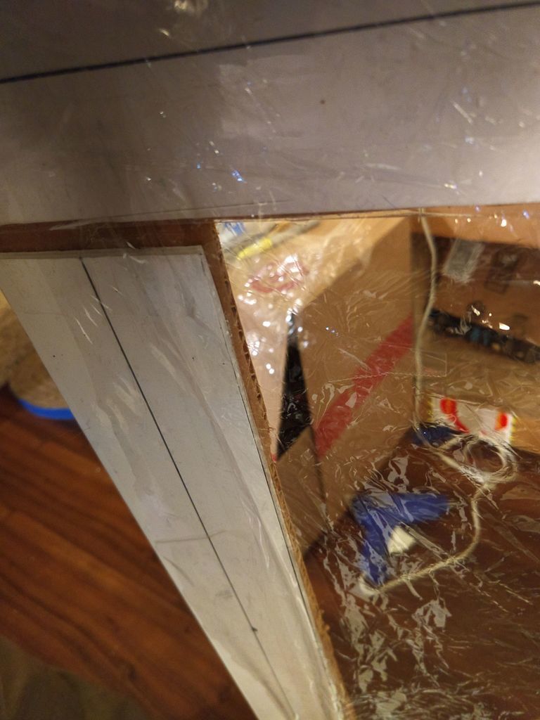 Укрепительные углы автор использовал в качестве ориентира для вырезания каркаса. Чтобы ещё больше подстраховаться, с наружной стороны каркас он укрепил изолентой.