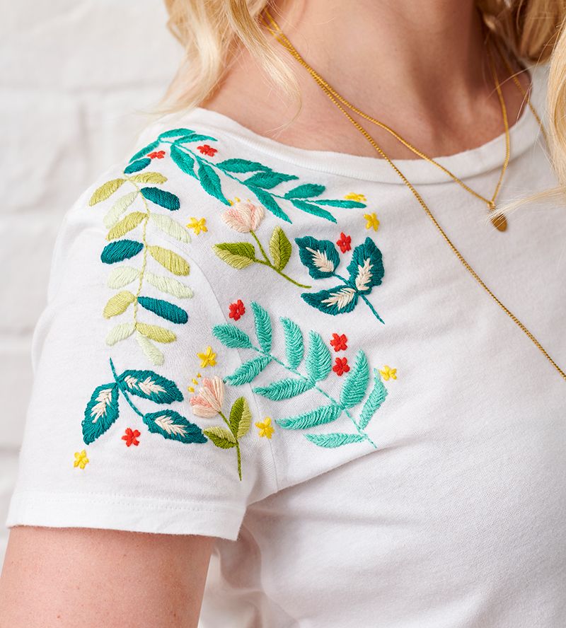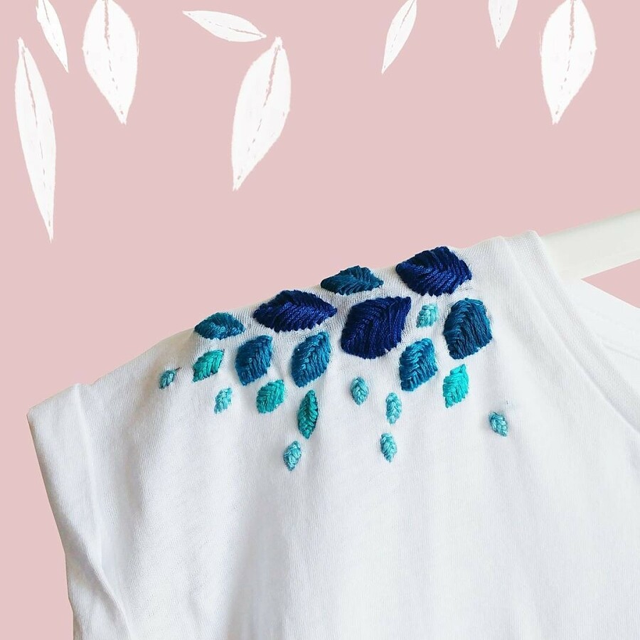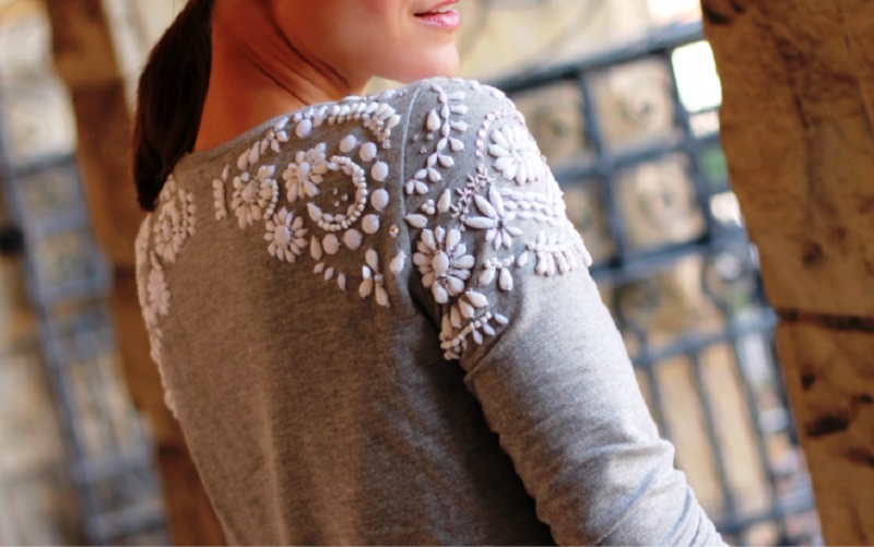 Красивый и нежный декор в виде вышитых на плечах цветов хорошо смотрится на любой одежде.