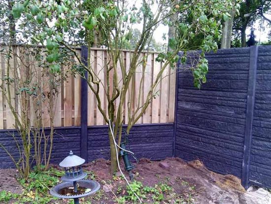 Бетонный еврозабор с деревянными секциями