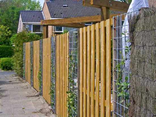 Комбинированный забор из доски и металлической сетки